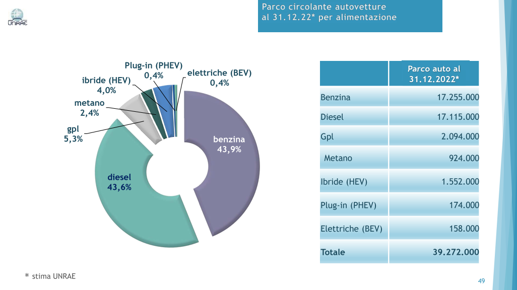 PARCO CIRCOLANTE AUTOVETTURE PER ALIMENTAZIONE (AL 31.12.22)